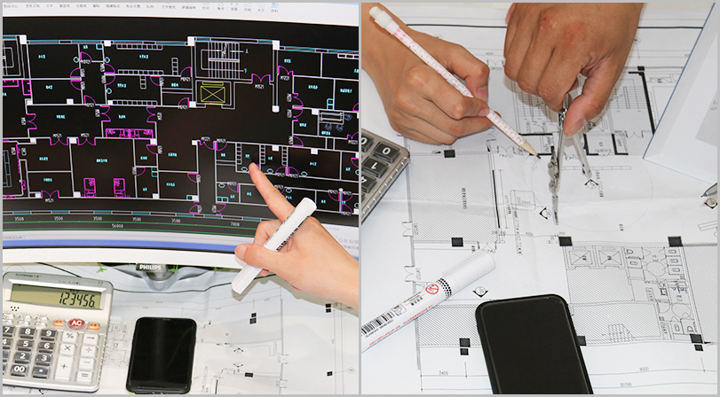 每承接一個工程,公司都會派出經(jīng)驗(yàn)豐富的技術(shù)團(tuán)隊(duì)上門勘察、實(shí)地測量,提供工程設(shè)計方案。測量各個房間尺寸及造型情況,做好記錄,做到心中有數(shù)。